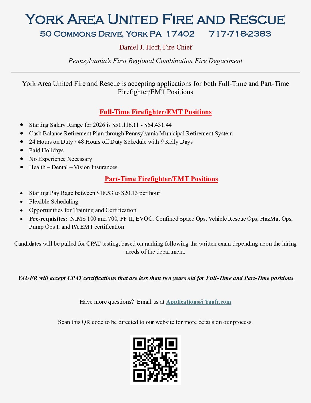York Area United Fire & Rescue is an Equal Opportunity Employer